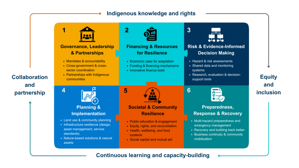 - Six capacities: Governance, Leadership & Partnerships; Financing & Resources for Resilience; Risk & Evidence-Informed Decision Making; Planning & Implementation; Societal & Community Resilience; Preparedness, Response & Recovery